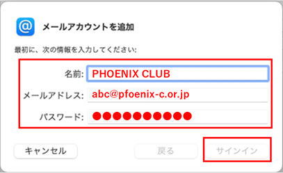 | 送信用メールサーバ | 設定書記載のサーバ名 |