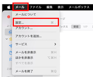 ホーム画面標準メールを開き上部【メール】→【設定…】の順に選択します。