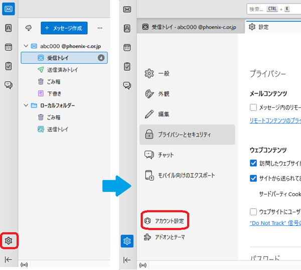【+アカウントの設定】をクリックし、【アカウントの設定(A)…】をクリックしてください。