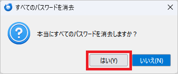 「すべて削除」を選択した場合、こちらの確認メッセージが表示されますので【はい】をクリックします。