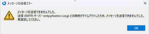 【送信(SMTP)サーバー smtp.phoenix-c.or.jp との接続がタイムアウト~、メッセージを送信できませんでした。】