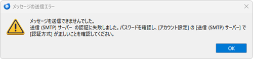 【送信(SMTP)サーバー の認証に失敗しました。】