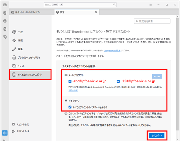 【パソコン版のThunderbirdと同じメールアドレスを登録】