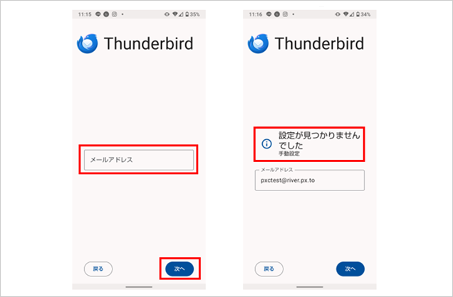 【スマートフォン版のThunderbirdのみにメールアドレスを登録】